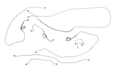 This 8-piece brake line kit for the 1957 Chevrolet Bel Air features OE steel construction and includes all necessary metal brake lines for a disc brake conversion. Designed with a proportioning valve at the master cylinder, the front-to-rear lines run outside the frame. The kit covers master cylinder lines, left and right front crossover lines, intermediate lines, and rear axle/trailing arm lines, providing a complete replacement solution for your vehicle’s brake system.
