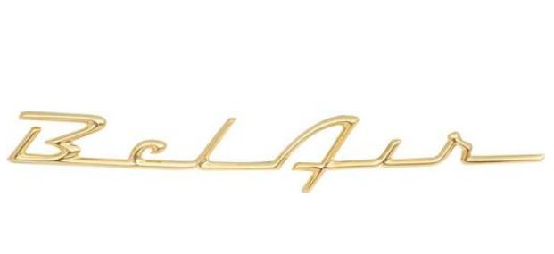 This newly reproduced emblem displays the "BEL AIR" gold script, tailored for the rear quarter panel of the 1957 Chevy passenger series. Each emblem comes individually with speed nuts for straightforward installation, guaranteeing an accurate and genuine restoration. Purchase a single emblem or two for both sides.