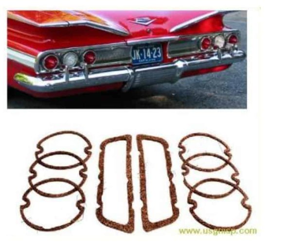 This is the simple gasket kit for the tail and park lamps for the Belair and Impala.. using 2 or 3 tail lamp lense on each side..