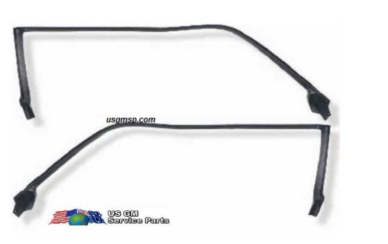 1963-64 Big car coupe roof rail weather seals with molded ends and clips as per original.