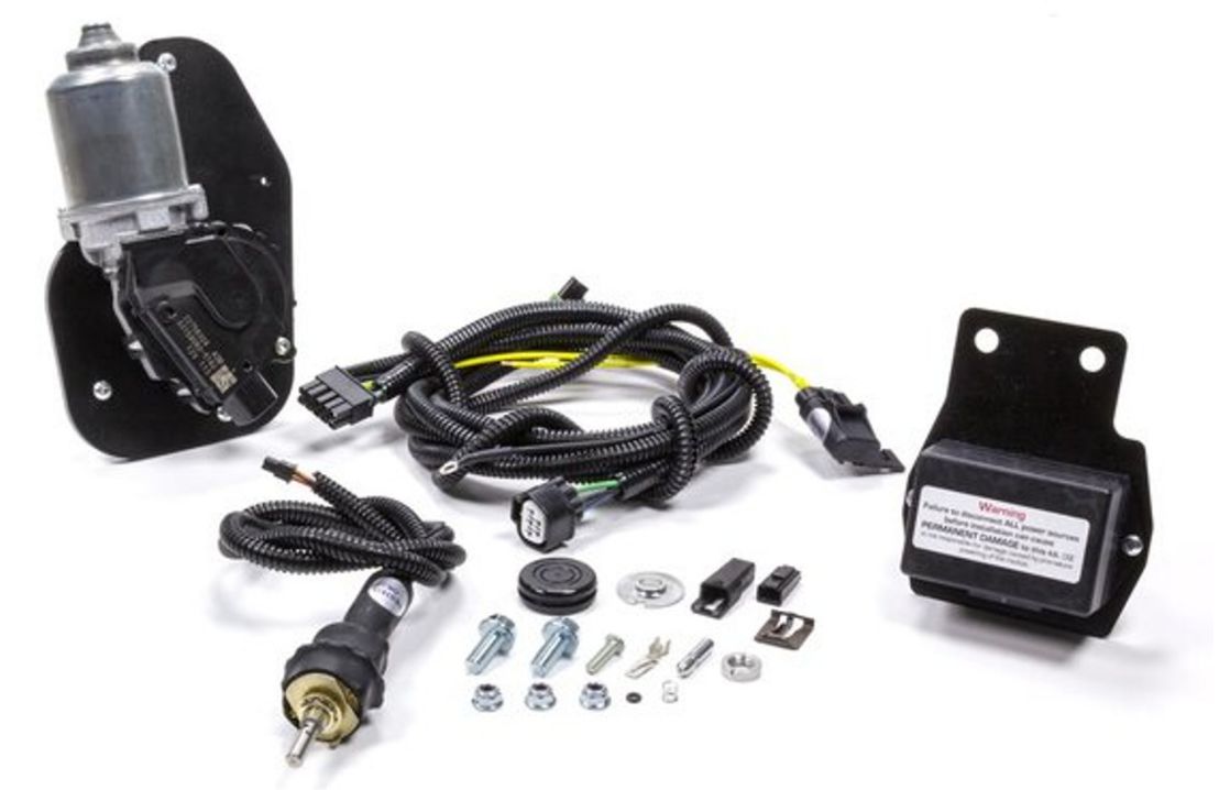 This US Made kit provides you with the performance and convenience of a late model wiper system in a package that easily and cleanly mounts in your car. The wiper motor contains a low profile, seven-speed wiper motor with 5 delays, low speed, and high speed, rotary switch, adapter plate, and wiring harness.