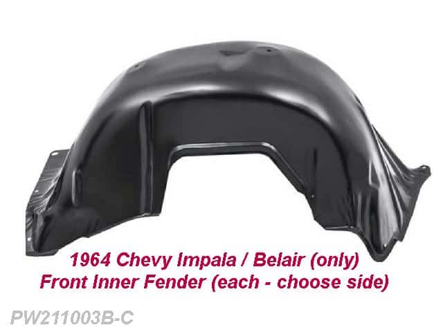 Brand new FRONT inner fenders for the ONE YEAR.. 1964 Chevy Full Size Impala / Belair.
