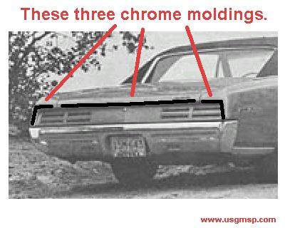 This is is the chrome extensions on the rear 1/4 panels and following across the trunk kit. Brand new excellent reproduction.