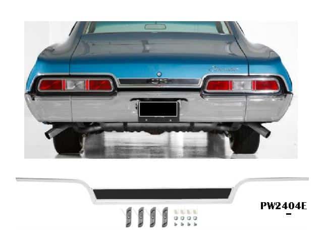 This is a one year model specific short production run emblem installed, molding with clips included. A full assembly across the boot/trunk lid of the 67 Impala 2 door Hardtop only.