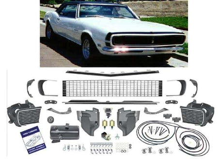 This is the full GRILLE AREA Conversion kit with the correct Chrome & Black headlamp doors and silver edge grill...not just parts behind it as some may supply.. but if you only want part of the kit.. we can do that also.