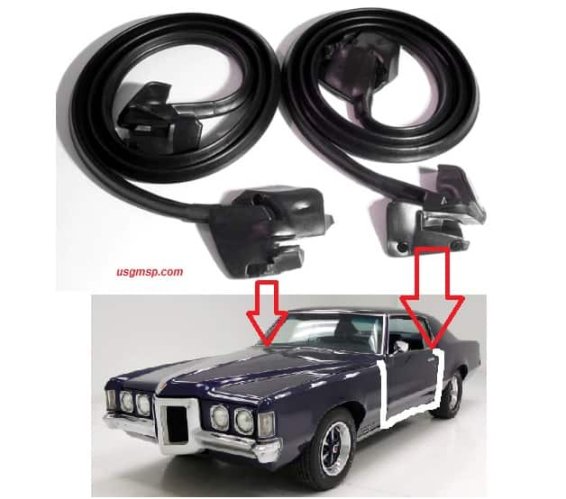 One pair of USA made correct 69-72 GM "G" body.. 2 door .. Door Seals.