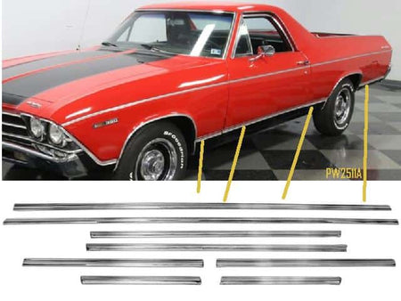 Full 1969 El Camino 8 pce kit as shown. Stock kit normally otherwise 4 weeks out .. call up or email if time line deadly etc. DELIVERY ADDITIONAL PVC Tube Packing .. courier only too large for post ie NO PO BOXES.