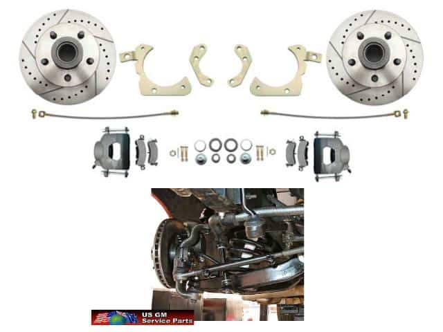A Disc Brake FRONT Kit: 1955 - 1957 Chevy SLOTTED Ground Kit w/ standard Calipers