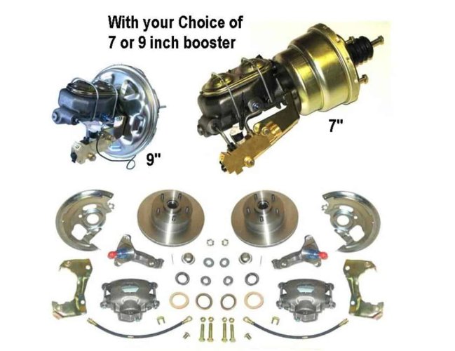 All parts, including spindles, full size original style rotors, dust covers & hardware, bearings & seals, hoses, Master cylinder PV valve etc & booster are new.