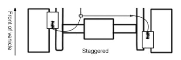 Staggered Caliper fitment., LHS is forward.. RHS is rear of the diff.