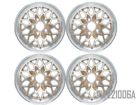 - Cast Alloy "Snowflake" wheel with GOLD or Silver or Black shadow tone.. and 4-1/4" backspacing.