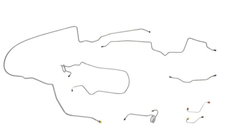 - This preformed complete brake line kit will replace all the metal brake lines on your vehicle and includes the master cylinder lines, left front line and right front crossover line, intermediate lines, and rear axle lines/trailing arm lines.