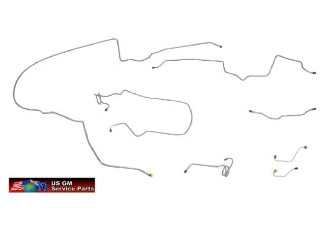 It includes the master cylinder lines, left front line and right front crossover line, intermediate lines, and rear axle lines/trailing arm lines.