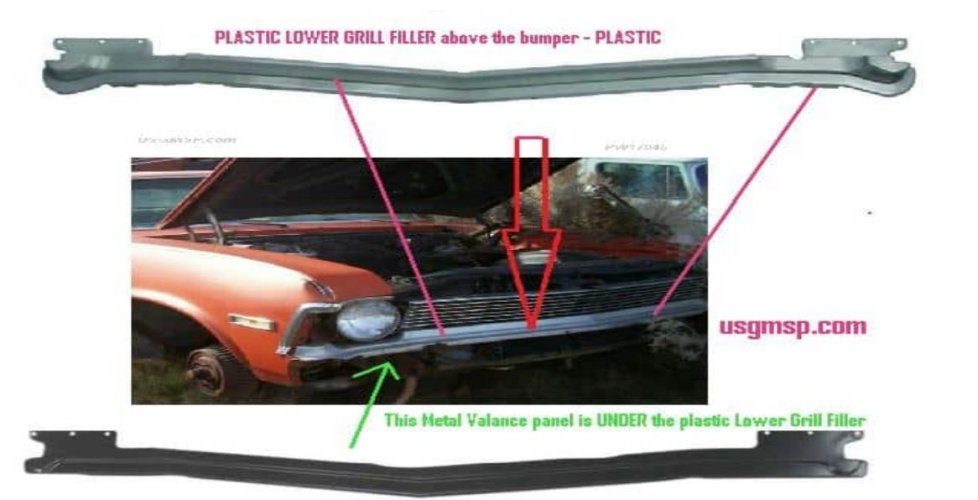 Bumper Valance: 68-72 NOVA front (Metal under plastic panel UNDER plastic upper panel )