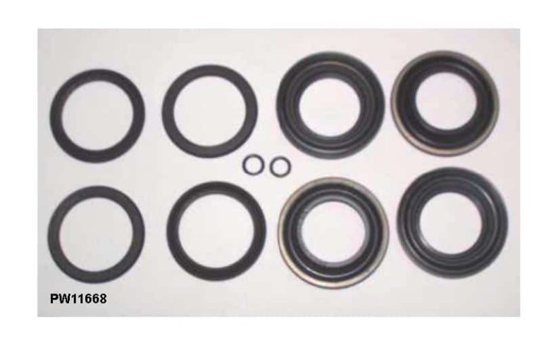 Complete set of 4 front caliper piston boots and seals representing the front caliper service kit.