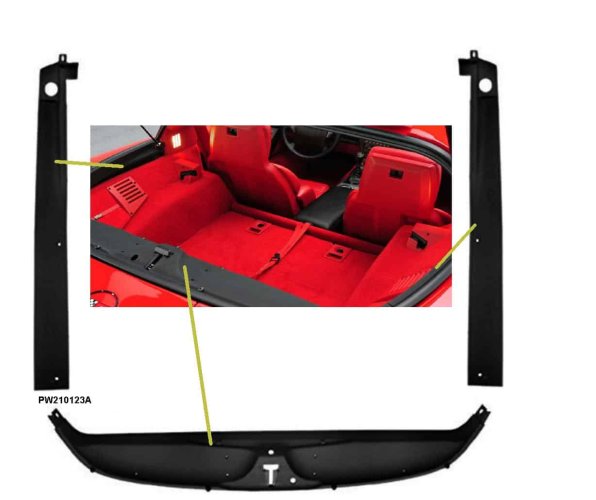 For the 84-96 Corvette.. the rear hatch area inside plastic trim back and side moldings as shown, per factory.