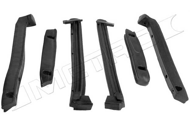 Convertible Top Rail Kit. 6-Piece set includes all right and left side top rail seals.