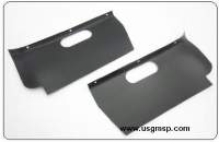 Pair of new repro shields for the 69-72 Corvette, notched style as shown.. they bolt up under the headlamps to protect the lamps again road debris when not in use etc.