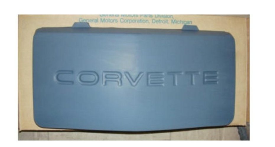 Brand new as shown.. Corvette front license plate filler panel with "Corvette" inprint.