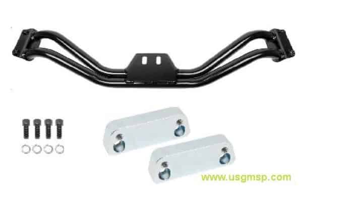 This twin tube cross member requires the small mounting supports if using on a factory frame.... they are bolted to the subframe FIRST the cross member to then bolt securely into. The Adapters are included in this cost.