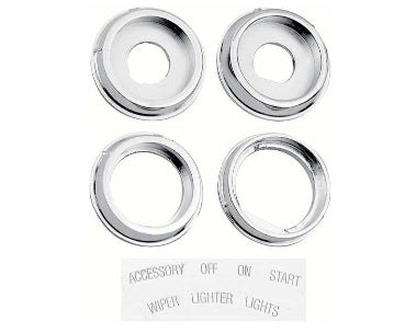 This 4 piece kit is the rings around all the knobs on the dash... exact precise repro 4 pieces, which includes the white stickers for the bezel function.