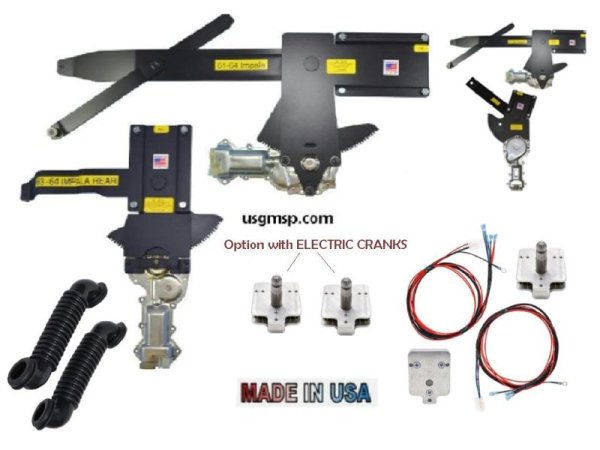 Electric Window conversion Kit: 67 Camaro Firebird (4) Front & Rear + w/E-Cranks