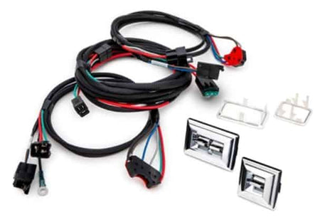 If preferring the chrome kit... it includes: 2 regulators (left & right side), 2 new ACI motors, completed wire harness, boots, instructions, standard chrome switches for door placement and conduit to protect the wires going thru the door.