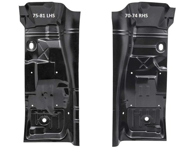 - For those replacing the RHS floor in 75-81 models.. consider the need for the cat converter hump on the RHSin these 75-81 Floors.. you may like the added space/depth of the 70-74 floor.. which is shown here......