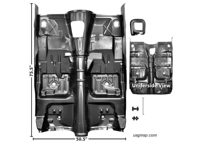 Available by special order only, this full floor pan assembly is designed for 1975-81 Camaro and Firebird TA models with manual transmissions. Pricing ranges from $1200 to $2200, depending on shipping options, timing, and supply source. This second-generation floor pan includes the toe board area and all necessary braces, providing a comprehensive solution for vehicles with significant structural concerns.