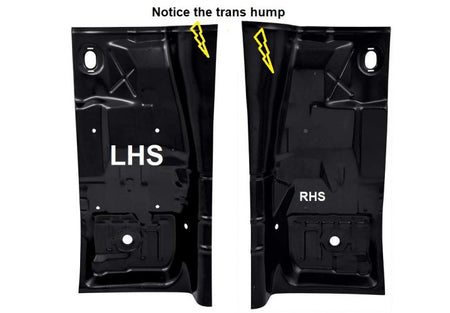This panel is extended width wise for fuller floor use on 1975-78 Firebird TA and Camaro contoured floor panel needs.. where its helpfull for the trans hump to be repaired.. perhaps out of the way of other reinforcment panels etc.. ?