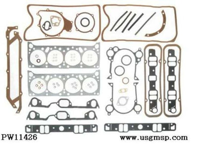 Full USA engine gasket kit for the Pontiac V8 326-400 - 61-68 - this comes with the early PONTIAC & 65-68 "8 bolt" water pump plate gaskets as shown.
