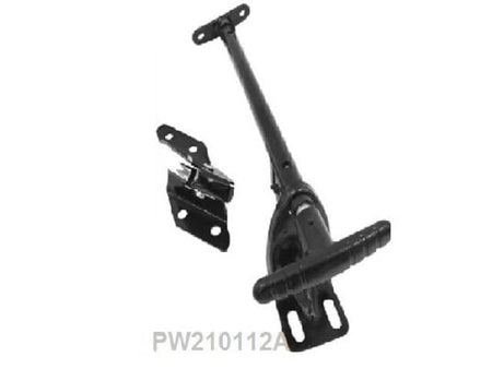 This is a full park brake pull release assembly designed for 1955-56 Chevy sedans. It is also compatible with right-hand drive Holden, Australian, and New Zealand-assembled sedans in Chevrolet and Pontiac models up to 1964. Some later versions feature a chrome handle, but the core assembly remains the same.