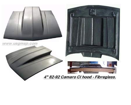 Hood: Camaro 82-92 Cowl Induction 4" rise. Fibreglass