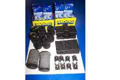 Rear suspension kit including: 2 x front leaf spring bushes (the big ones), 4 x Rear upper and 4 lower leaf insulator pads 6 New GM front support bracket captive nuts 8 Rear spring hanger bushes Good value simple DO IT ONCE KIT...