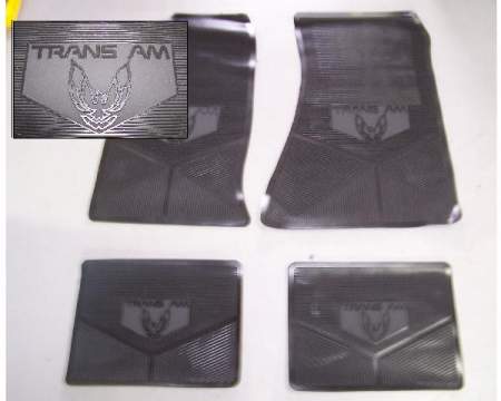 New heavy rubber molded black Trans Am OR Firebird mat set for 3rd gen Firebird & Trans Ams featuring the trade mark "Trans Am" or "Firebird" & eagle.