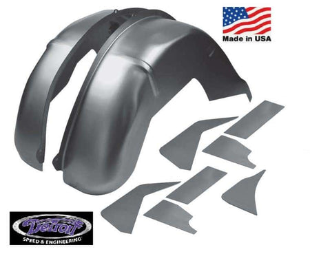 Detroit Speed’s Mini-Tubs are inner wheel housings crafted to fit wider tire and wheel setups, supporting tires up to 315mm (1967-1968 F-Body) and 335mm (1969 F-Body). Engineered for precise fitment, they preserve a factory look and are available exclusively from Detroit Speed. Each set includes driver and passenger side laser-cut frame rail and trunk closeouts, cut templates, and package tray braces, eliminating the need for extra sheet metal. Built from 18-gauge steel and made in the USA, these Mini-Tubs add nearly three inches of width over stock and greatly reduce fabrication time. For a far more complete custom solution which cost more see part numbers 041203, 041204, 041205, or 041206.