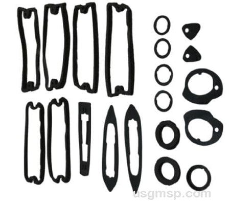 This is a collection of gaskets typically used during a repaint , covers for the 2 doors and factory mirror, park and tail lamps, door locks too.