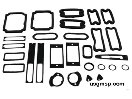 This is a collection of gaskets typically used during a repaint , covers for the 2 doors and factory mirror, park and tail lamps, door locks too.
