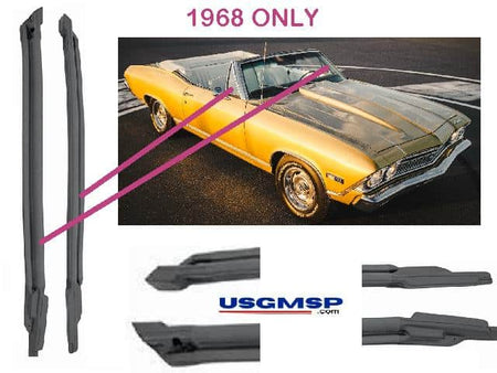 Goes up the windscreen pillars from just above the door upper hinge to the corner were the door window turns. Supplied in pair sets. These convertible only pillar post seals are the the GM "A BODY" series being Pontiac GTO, Le Mans, Tempest, Chevy Chevelle & Malibu, Buick Skylark/ GS & Olds Cutlass/442.
