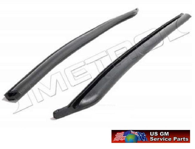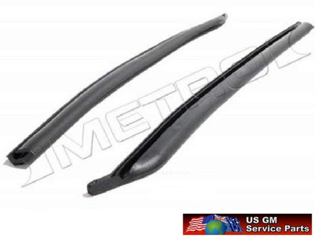 These are the PAIR of seals between the door glass window and the rear side window.. slides into a chrome channel has a moulded finished end.