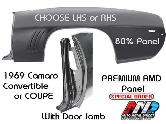 Quarter Panel: 1969 Camaro 1/4 panel skin w/ Door return - PREMIUM quality - EACH