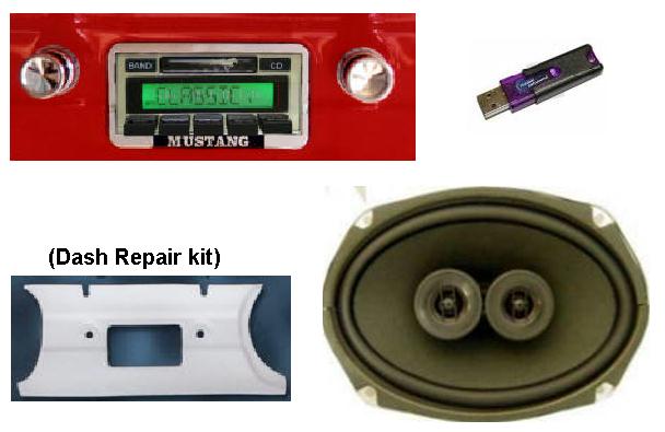 Specific 64-66 Mustang IN DASH AM/FM Radio with USB input for MP3/WMA file playback and direct CD Changer Controller. This AM/FM radio will control all functions of the optional Custom Autosound 10 disc CD changer from the buttons on the radio.