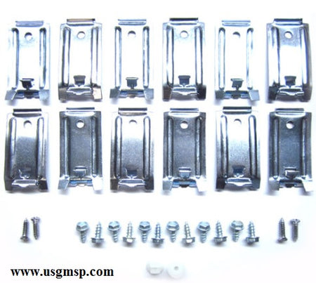Enough specific clips for both sides of the 64-65 Pontiac A body rocker moldings as shown .. comes with small hardware parts also.