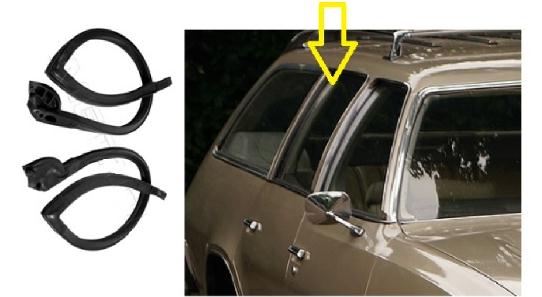 This is the PAIR of REAR UPPER ROOF RAIL SEALS.. around the GLASS that the door glass winds into.... like a giant size upside down " U"