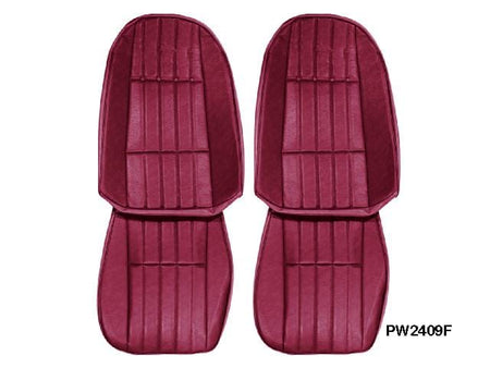 STANDARD Camaro front bucket seat trims.. front only.. with curved headrest as shown.. vertical sewing pattern.. as shown... used on 78-79 Camaro.