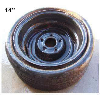 SOLD: Was $44 - Found under a bench in the warehouse we are clearing out.. 14 inch Compact Spare. Not inflated as shown.