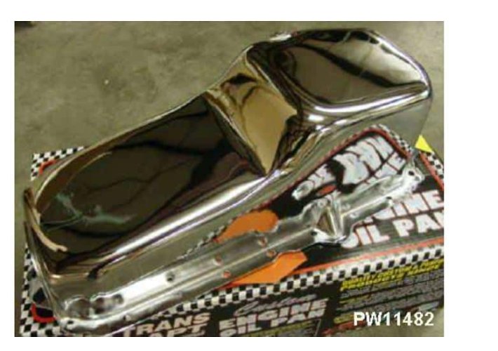 This aftermarket chrome sump as shown is for a PONTIAC V8.. NOT a Chevy.. .. this fits the 301, 326, 350 Pontiac, 400 Pontiac, 455 Pontiac... and has the drain plug nut as well.