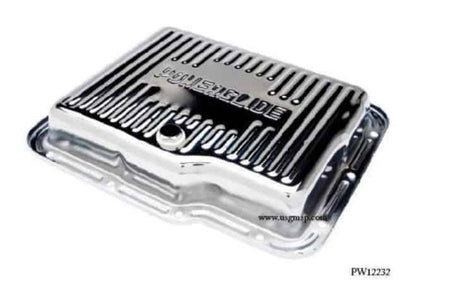 These are new good quality stamped chrome transmission pan for the 66+ powerglide auto box use.