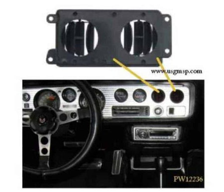 This is for cars with FACTORY AC.. they had this vent in the center of the dash.. behind the two round black vent outlet rings. It's a ONE housing assembly that holds the two vent outlets as shown.