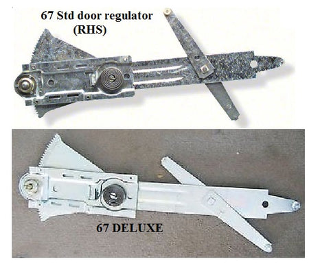 Window winding regulators are either LH or RH sides. LH is USA Drivers side. The regulator cranks the window glass go up and down. They are different for Deluxe or the Standard trim on a Camaro or Firebird..... and different for 1967 to 68-69 model MANUAL windows - so don't get them mixed up .. ok.. good...